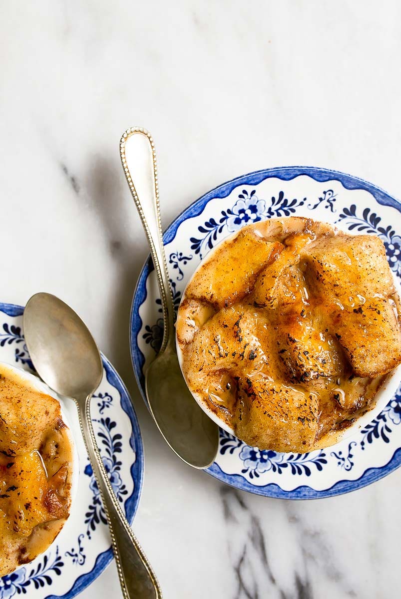 Did you know you can make a warm and gooey dessert like bread pudding in the crockpot? It's a hands-off way to make an effortless, impressive dessert — you just put the bread pudding mixture into ramekins and then bake them in a water bath in the slow cooker. Genius!