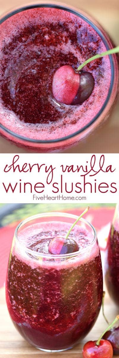 For this one, think cherry coke slushie meets adult fun. This one is sweet enough to be dessert, but can also be a great literally any time of the day.