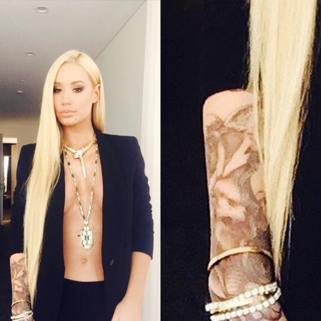 Iggy has a floral sleeve tattoo on her right arm that she debuted at the 2016 GQ Men of the Year Awards in Sydney, Australia. She has yet to share what the floral piece means, and it seems to cover up both the Birth of Venus and horse tattoos.