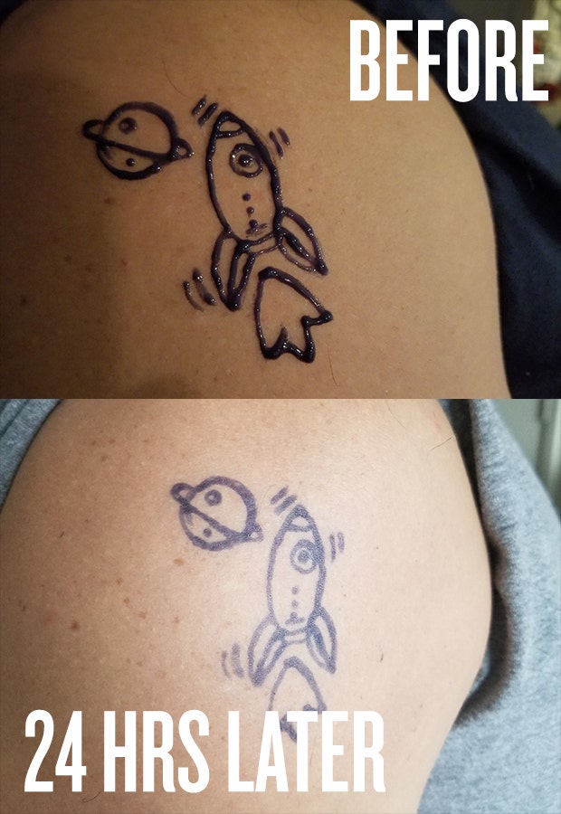 As with anything, free-handing your own semi-permanent ink takes practice. But ultimately, if you're looking for a temporary tattoo, it's because you want to try out rocking something fun on your body without the worry of having to regret it forever — if you want art on your skin it may be wise to hire a professional tattoo artist.