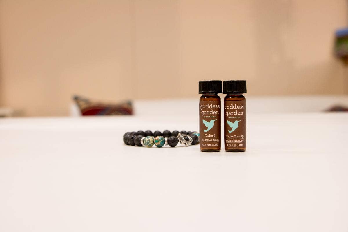 The Goddess Garden Aromatherapy bracelets all feature porous lava rock to capture and carry the scent of the blends. Then genuine stones were added with energetic properties. The stones and oils work in tandem to enhance your mood and reinforce your intentions, while the symbolic charms make each bracelet stylish.