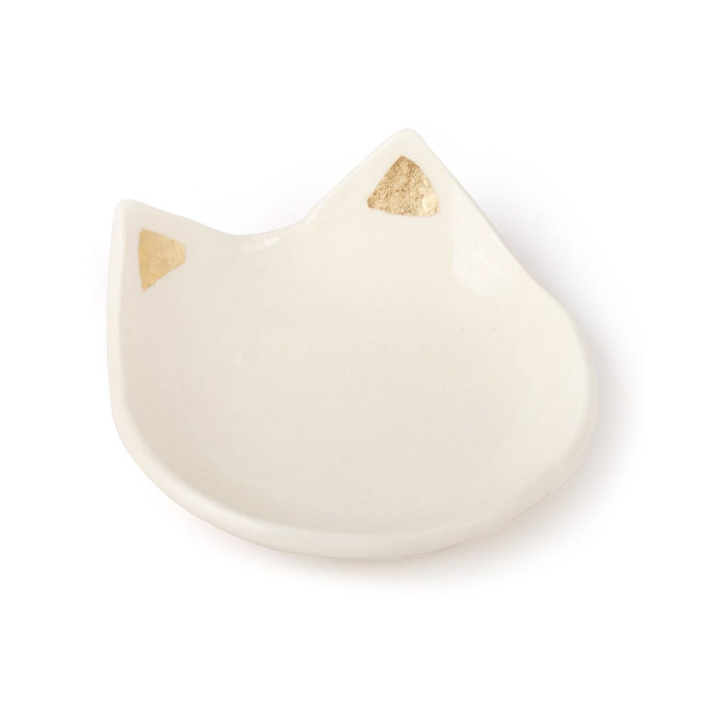 Cute and dainty, this is a great cat-themed dish for rings, earrings, or even spare change. It easily fits all your cat-related jewelry. It's also stamped on the back with 'Up in the Air Somewhere x Catbird,' so you always remember where you can get your favorite cat things.