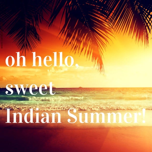 So essentially, Indian summer is when there are periods of extreme heat or summer like days in the middle of Autumn or Spring, which making it seem like the summer may never, ever end. Indian summers are an amazing break from chilly weather and make the summer feel endless. But Indian Summers aren't only a season; they're also a state of mind.
