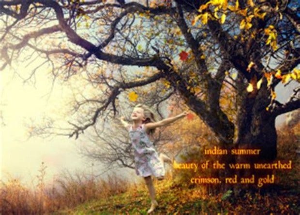 "The Indian summer, the dead summer's soul" -Mary C. Jones