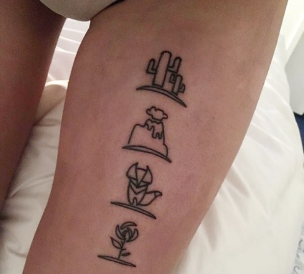 Many initially thought that this self-portrait piece was just that, but it actually has a hidden meaning. Halsey got the minimalist portrait tattoo with the message "Everything" underneath in honor of Norwegian electronic musician Lido’s 2016 album Everything. Lido played an important role in Halsey's musical career, serving as the executive producer for her debut album Badlands.