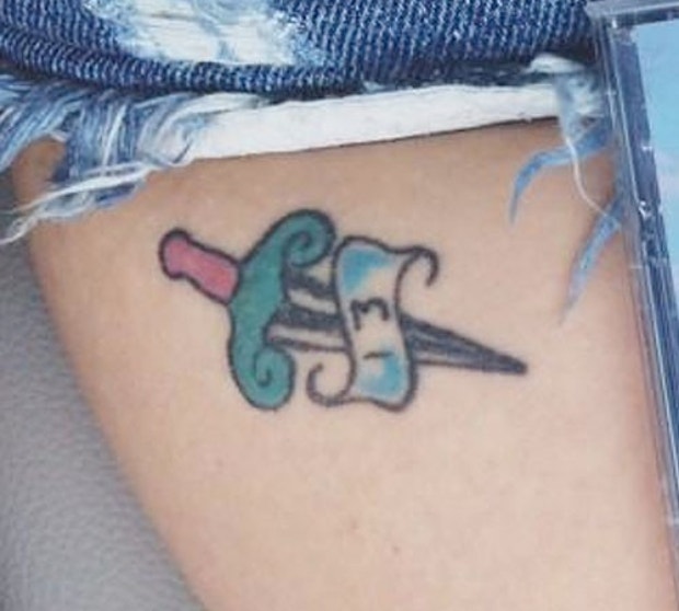 This next tattoo she got at just 16 years old! Although it looks like a typical Friday the 13th flash tattoo, this dagger has a special meaning and funny memory. Halsey told iHeartRadio, "I got it in remembrance of a friend that passed away. This one was also when I was 16. I got it with a fake ID. It's awful. I got it in some back alley tattoo shop in Strasburg, Pennsylvania. No joke. It's all scarred and gross. I also went to a friend's senior prom afterwards. And when you're from Jersey, when you go to senior prom, you go down to the beach, you can go down the shore. The seaside. It's the thing, which is super embarrassing, and I could never say [it] in any interview but in this one, which is hilarious because a lot of people reading this are going to know exactly what I'm talking about. We were on the shore, and I had just gotten this tattoo, and I was running on the beach, and rolling around in the sand, and in the water, and came out, and realized the whole thing was just bleeding. I had sand stuck in it, and I was like 'this is why you're supposed to be a grownup when you get a tattoo.'"
