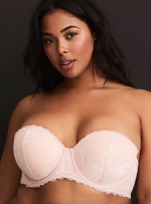 21. Torrid Light Pink Strappy Lace Push-Up Strapless Bra