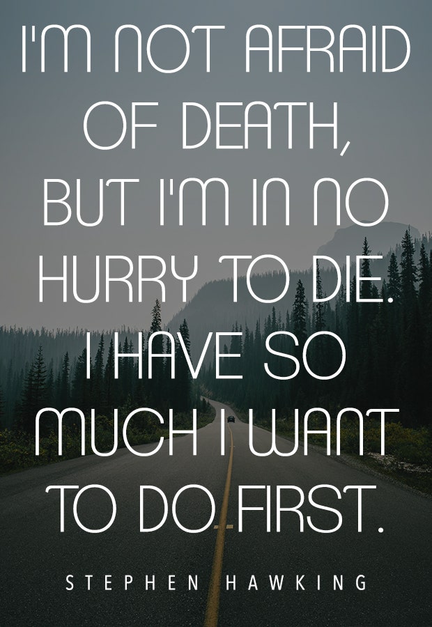 "I'm not afraid of death, but I'm in no hurry to die. I have so much I want to do first."— Stephen Hawking