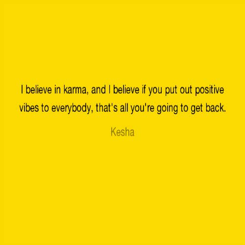 "I believe in karma, and I believe if you put out positive vibes to everybody, that's all you're going to get back."
