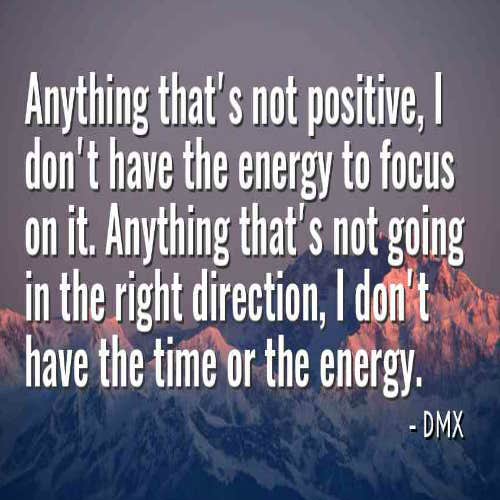 "Anything that's not positive, I don't have the energy to focus on it. Anything that's not going in the right direction, I don't have the time or the energy."