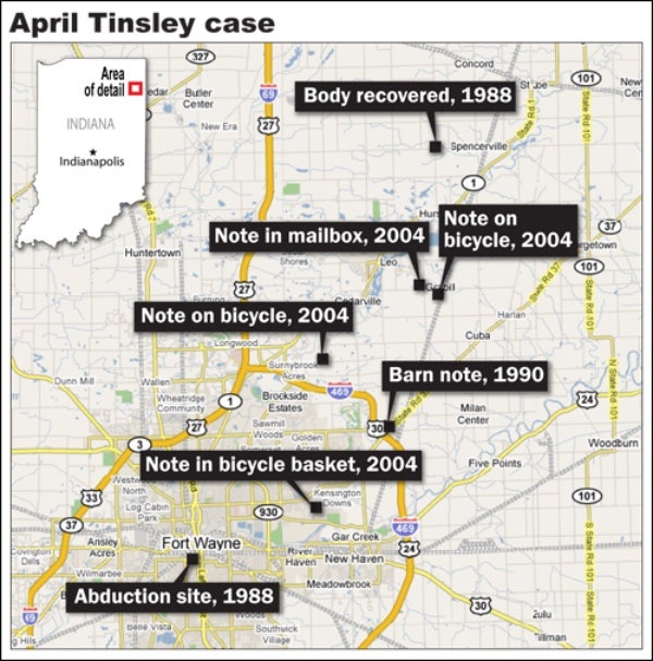 All remained quiet until 2004, when baggies filled with used condoms, notes, and some Polaroid pictures were tied to bikes that belonged to little girls in the Fort Wayne area. The notes mention April and threaten that he will kill again.