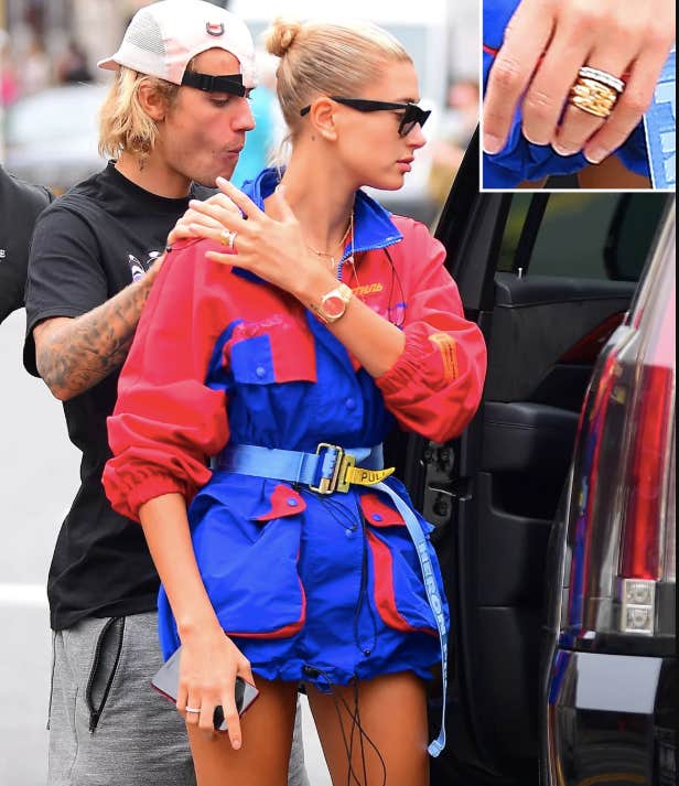 In a photo snapped on July 30th, the two were spotted out in New York City, but she wasn’t wearing the custom $500,000 diamond engagement ring Bieber proposed to her with. Instead, she was rocking a diamond eternity band with a second gold band.