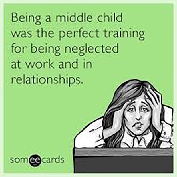 "Being a middle child was the perfect training for being neglected at work and in relationships."