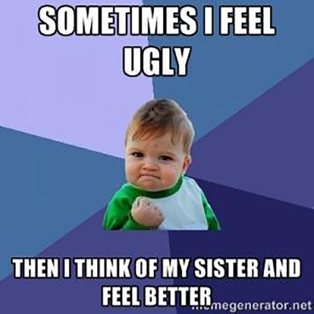 "Sometimes I feel ugly...then I think of my sister and feel better."