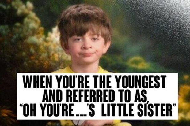 "When you're the youngest and referred to as, 'Oh, you're ___'s little sister.'"