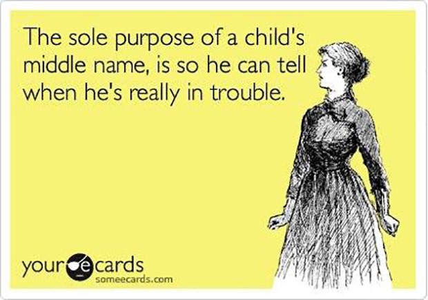 "The sole purpose of a child's middle name is so he can tell when he's really in trouble."