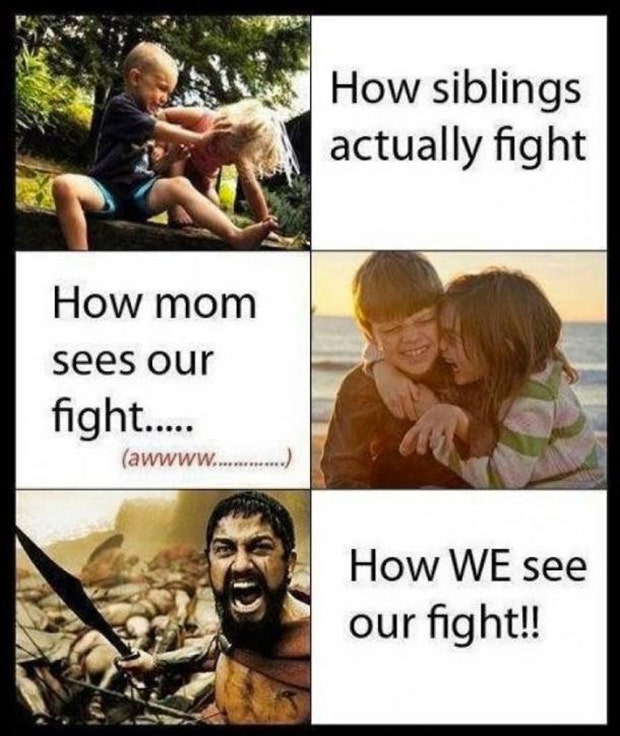 "How siblings actually fight, how Mom sees our fight, how WE see our fight!!"