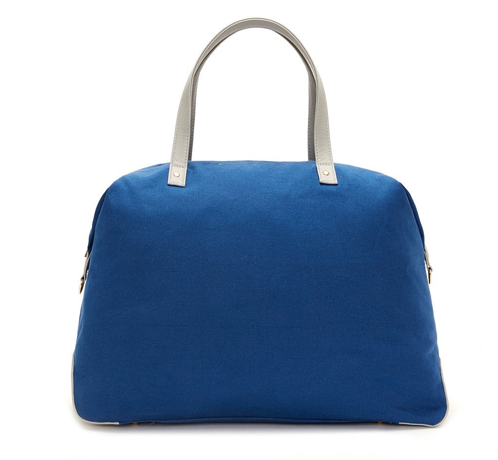 This is the perfect quick trip bag, which is a great alternative to the traditional weekender. It's also co-friendly with contrasting color vegan leather handles and adjustable cross-body straps. The bag has a zipper opening and multiple inside pockets, and has a water-resistant lining.
