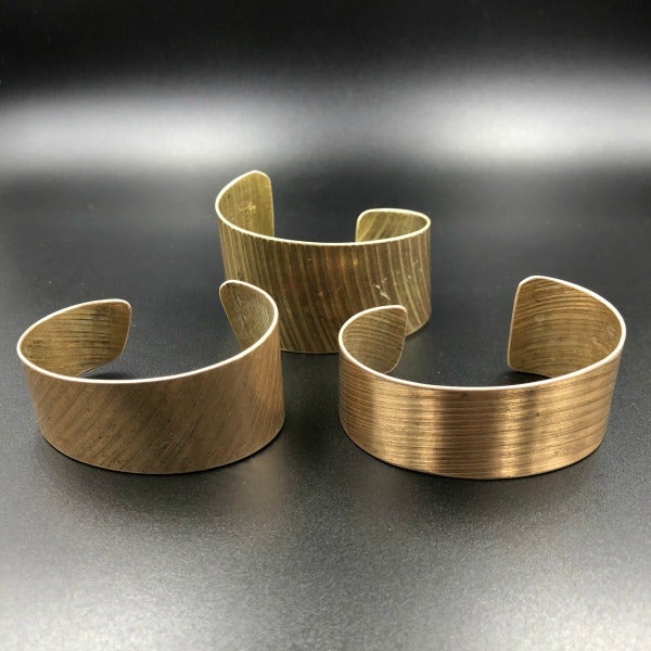 These cuff bracelets make a great gift for the music lover in your life. Crafted from the cymbals discarded by schools, bands, and music stores, these carry the story of the music they have been a part of with them. Each piece is one-of-a-kind and will vary slightly.