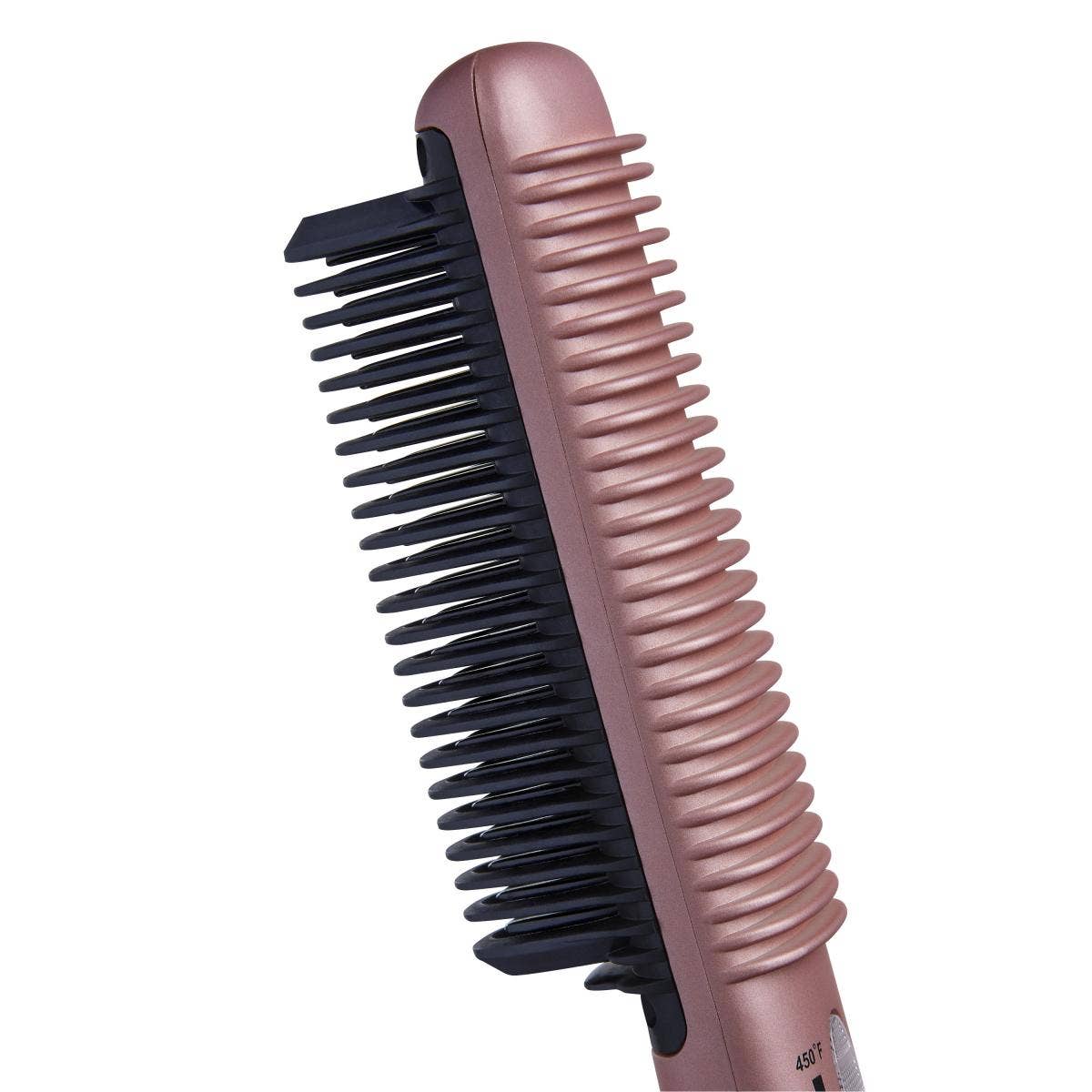 The KISS USA Comb Straightener has ceramic and ionic comb plates, providing a wider surface area to grab large portions of hair. This styling tool allows you to detangle and straighten hair simultaneously so you can style your hair twice as fast while easily creating lots of shine and luster.
