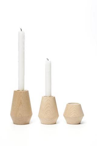 These candle holders will add a touch of modern design to your next dinner party table decor. A smooth finish in a bright, light maple impart a modern look to this classically shaped candle holder.