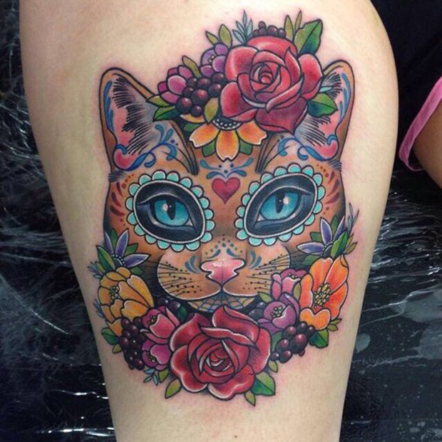 13. Sugar skulls look nice in the neo-traditional tattoo style.