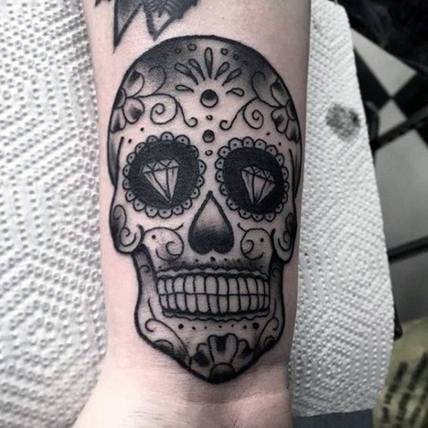 Although this sugar skull tattoo doesn't have an excess amount of detail, its message is clear.