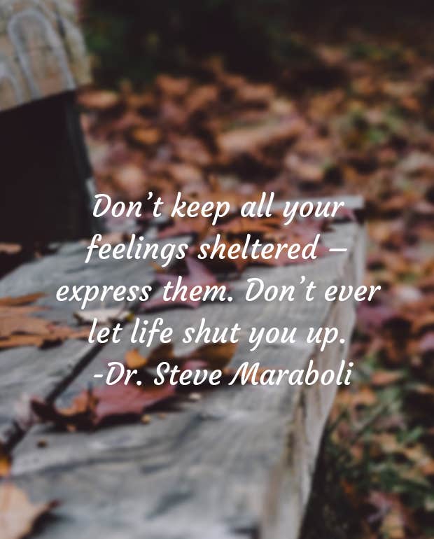 Don’t keep all your feelings sheltered — express them. Don’t ever let life shut you up. – Dr. Steve Maraboli