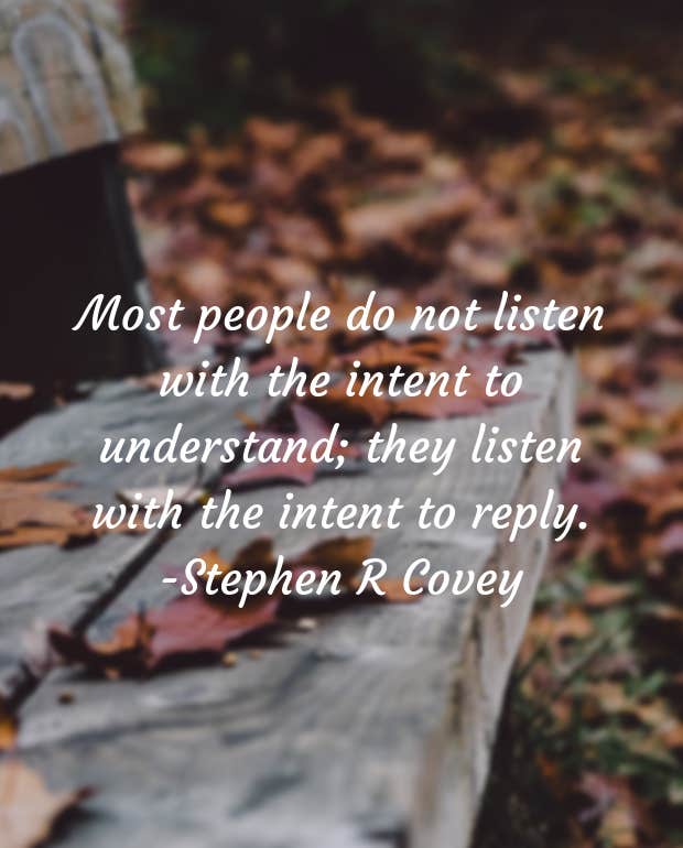 Most people do not listen with the intent to understand; they listen with the intent to reply. -Stephen R Covey