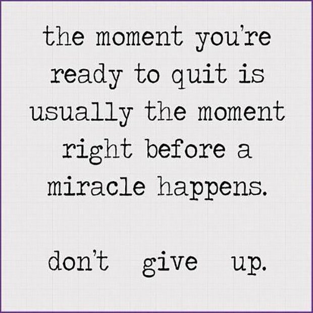 "The moment you're ready to quit is usually the moment right before a miracle happens. Don't give up."—Unknown