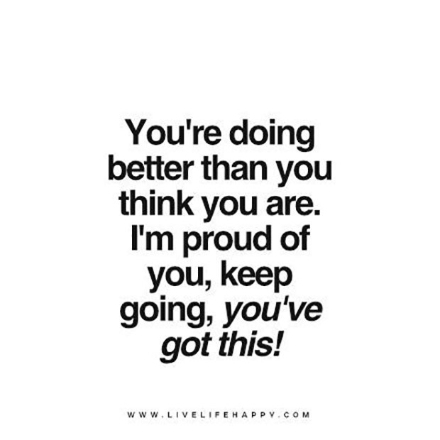 "You're doing better than you think you are. I'm proud of you, keep going, you've got this!"—Unknown