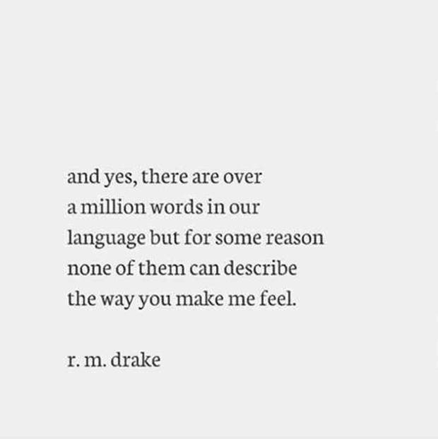 And yes, there are over a million words in our language but for some reason none of them can describe the way you make me feel. — r.m. drake