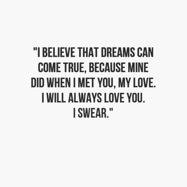 I believe that dreams can come true, because mine did when I met you, my love. I will always love you. I swear. — Unknown