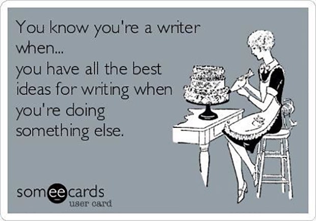 "You know you're a writer when...you have all the best ideas for writing when you're doing something else." - Unknown