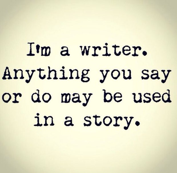 "I'm a writer anything you say or do may be used in a story." - Unknown