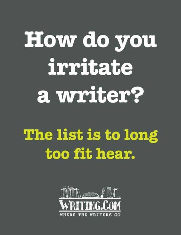 " How do you irritate a writer? The list is to long too fit hear." - Unknown
