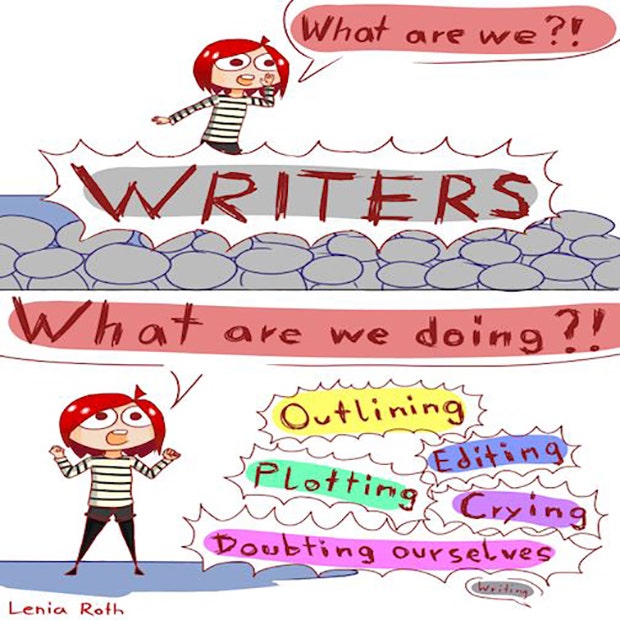 "Writers. What are we doing? Outlining, editing, plotting, crying, doubting ourselves." - Lenia Roth