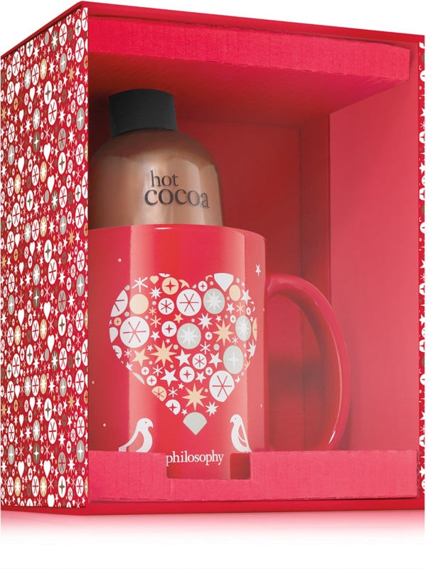 This duo features the fan-favorite shower gel formula, infused with the rich, cream scent of hot cocoa. It's paired with a signature philosophy “hygge” mug, the Danish way to express that special warm and cozy feeling that’s especially present around the holidays.