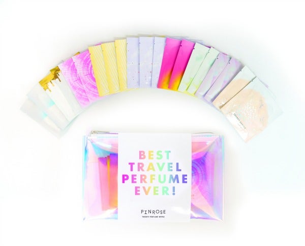 Made for movers and shakers, this playful fragrance gift set includes 20 individually packaged wipes soaked in a perfectly measured dose of eau de parfum. It features all 9 fragrances from Pinrose collection.