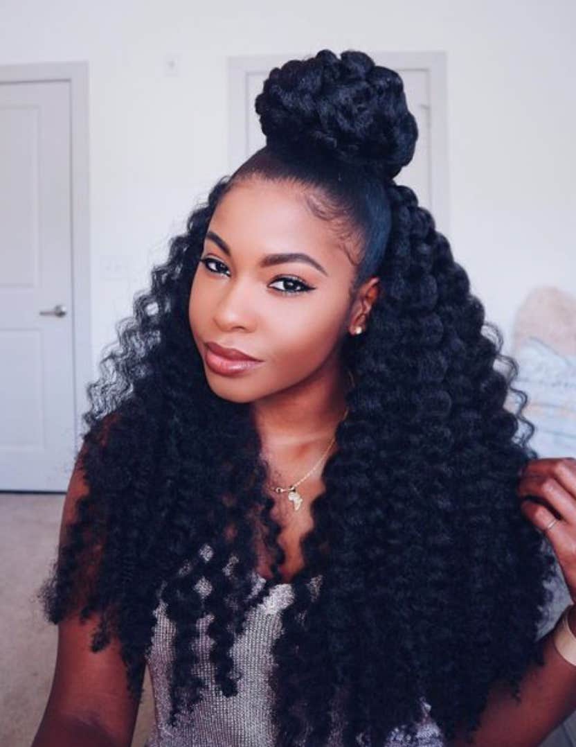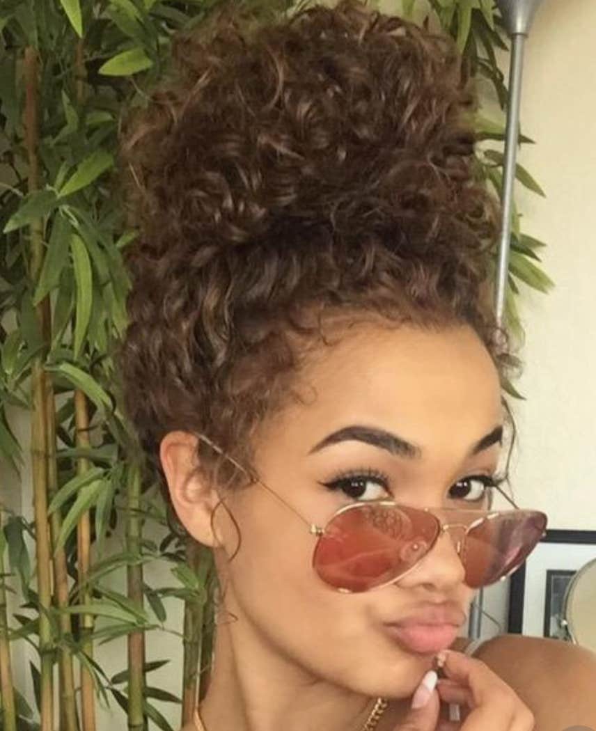 Embrace those natural curls and pull your hair up into a gorgeous high bun!