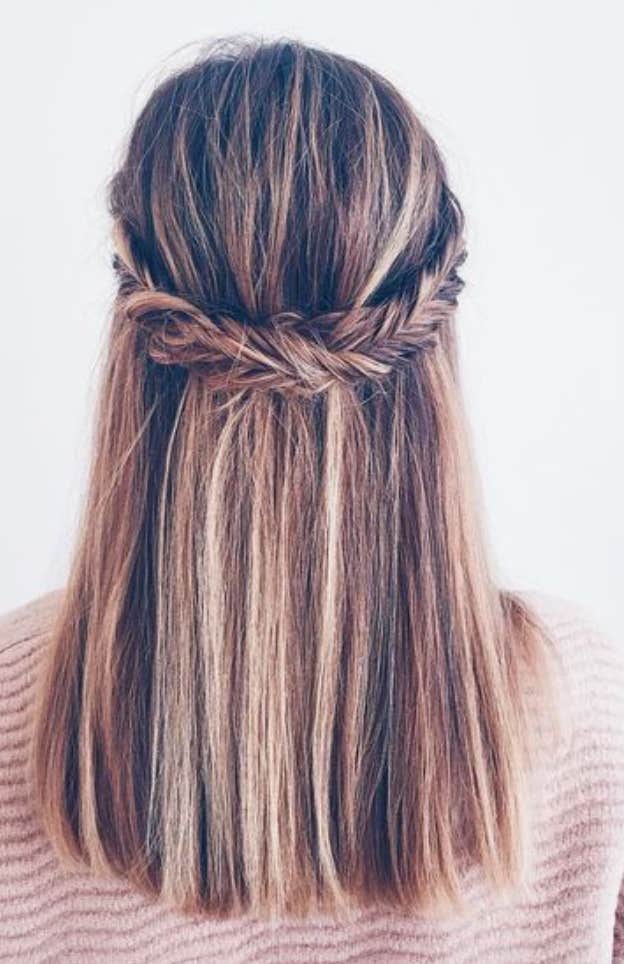 If mastering the French braid isn't something you have down yet, don't fret. Twisting your hair into two sections and pinning back is a great alternative like the one pictured above.