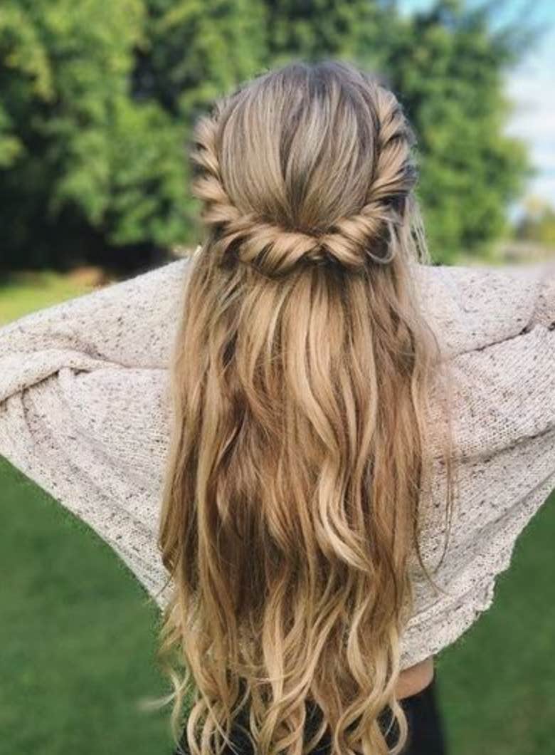 There are so many aspects of this style to talk about. The long hair. The curls. But this twisted crown is what has us swooning.