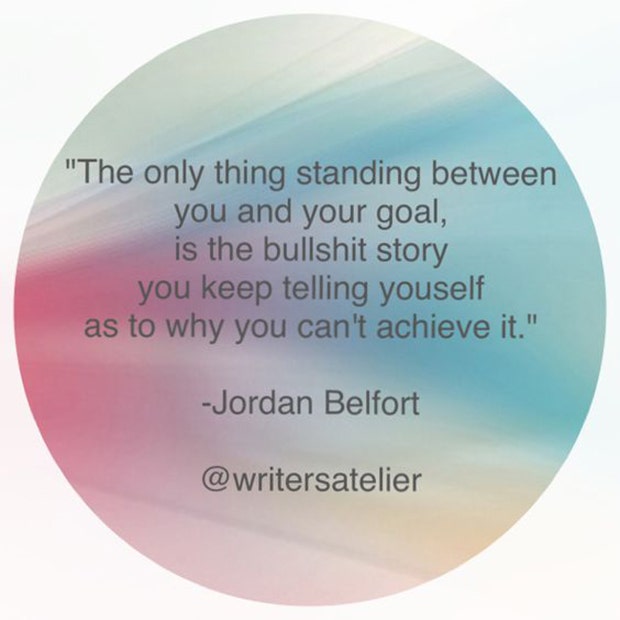 "The only thing standing between you and your goal is the bullshit story you keep telling yourself as to why you can't achieve it."— Jordan Belfort