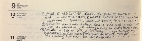 Here, my tone is much more invested in my thoughts. The words reflect my joy and the excitement I felt for my future. I’m much more optimistic in my words, which helps me when I reflect on why I felt so excited, and identify the positive sources of energy in my life. I understand that spending time and investing in 1) friends, 2) swimming (a new skill I’m trying to work on), 3) ZTL (a passion project), is a specific source of joy for me, and I should be open to dedicating and focusing more of my energy with these things in my life.