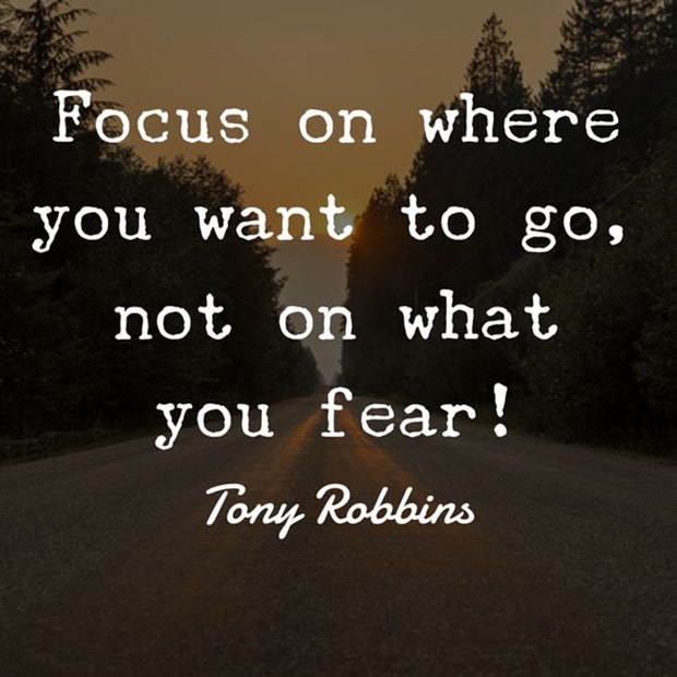 "Focus on where you want to go, not on what you fear! " —Tony Robbins