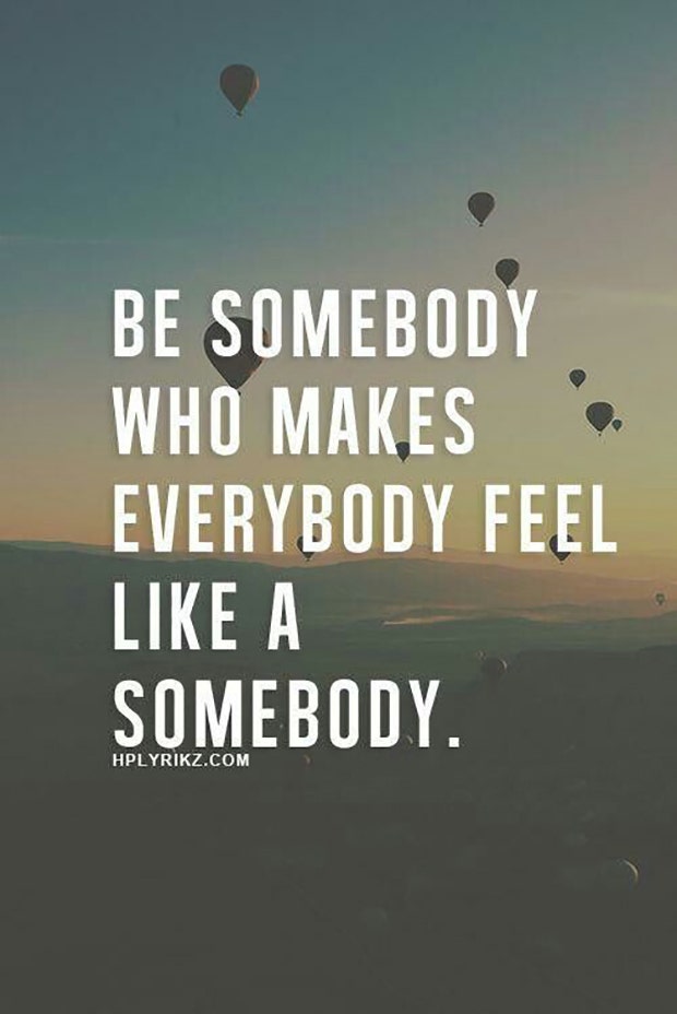 "Be somebody who makes everybody feel like a somebody." — Unknown