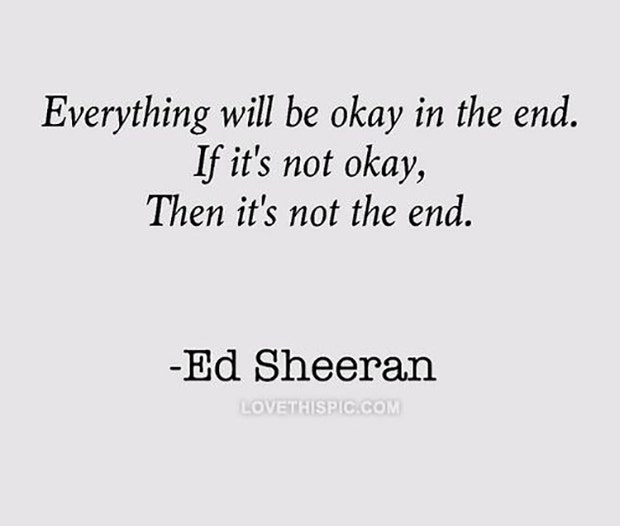 "Everything will be okay in the end. If it's not okay, then it's not the end." —Ed Sheeran