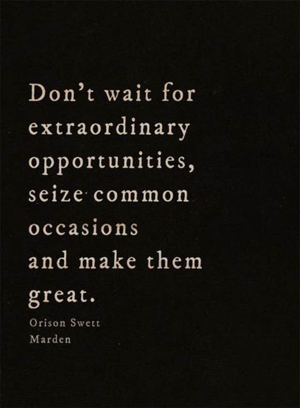 “Don’t wait for extraordinary opportunities, seize common occasions and make them great.”— Orison Swett Marden