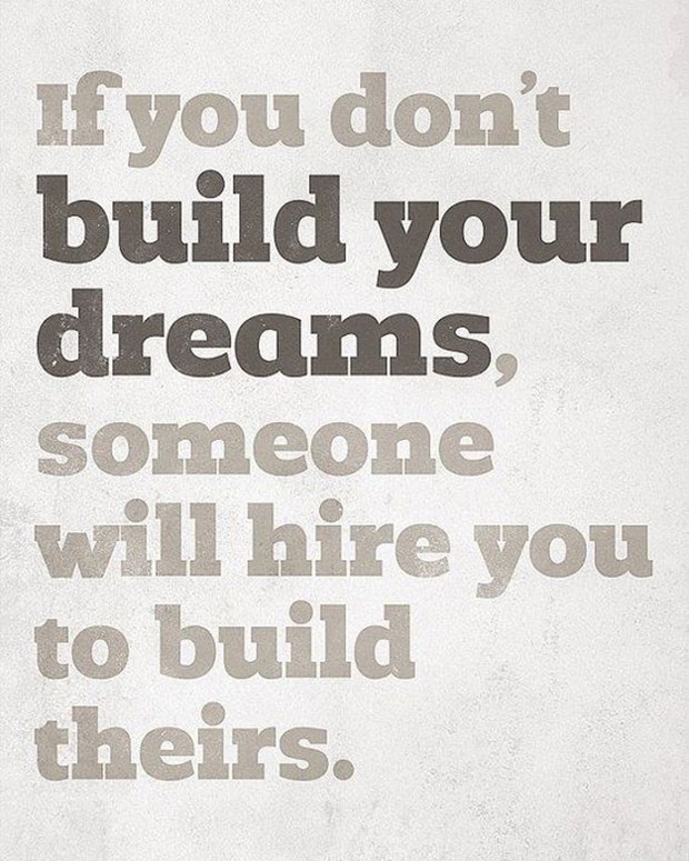 “If you don’t build your dreams, someone will hire you to build theirs.”— Unknown