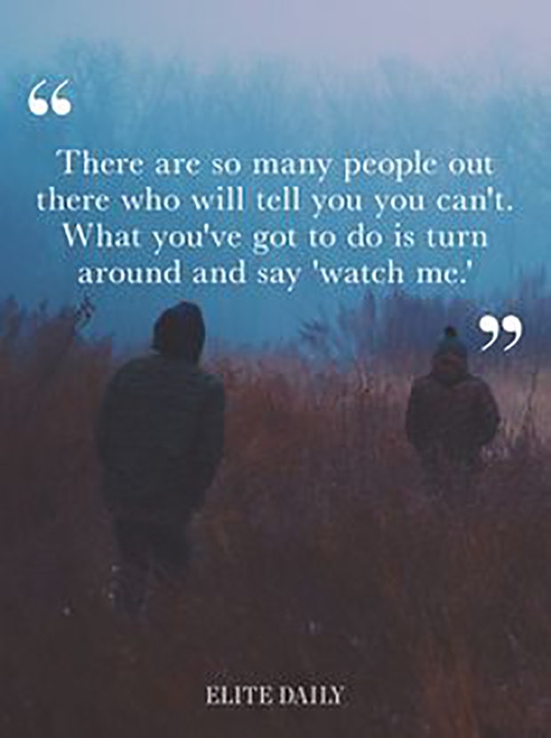 "There are so many people out there who will tell you you can't. What you've got to do is turn around and say 'watch me.'" — Unknown